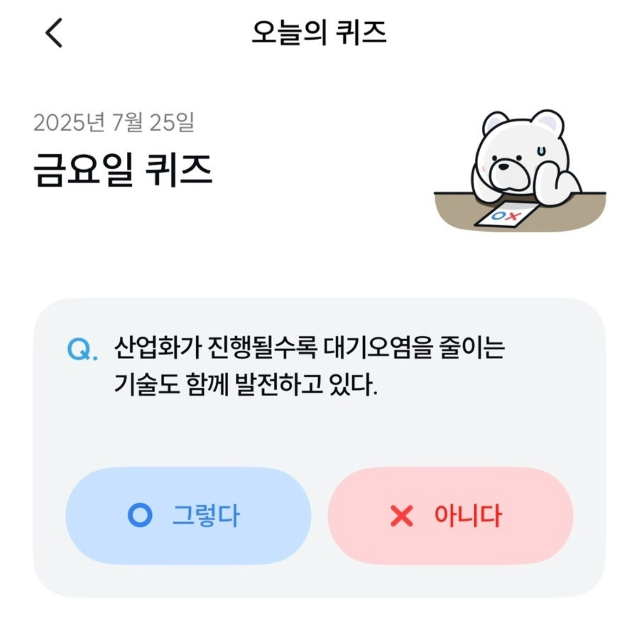 오늘의 **기후동행퀴즈 7월 25일 정답은 ‘그렇다’**였습니다.