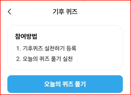 - 참여 위치: 기후행동 기회소득 앱 > 활동 > 기후퀴즈