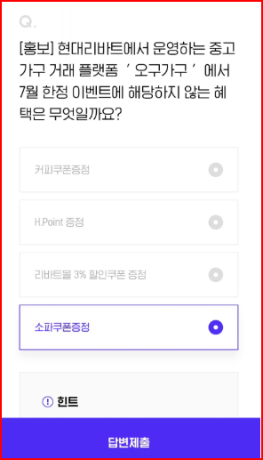 H.Point 오늘의 퀴즈 정답은 '소파 쿠폰 증정'