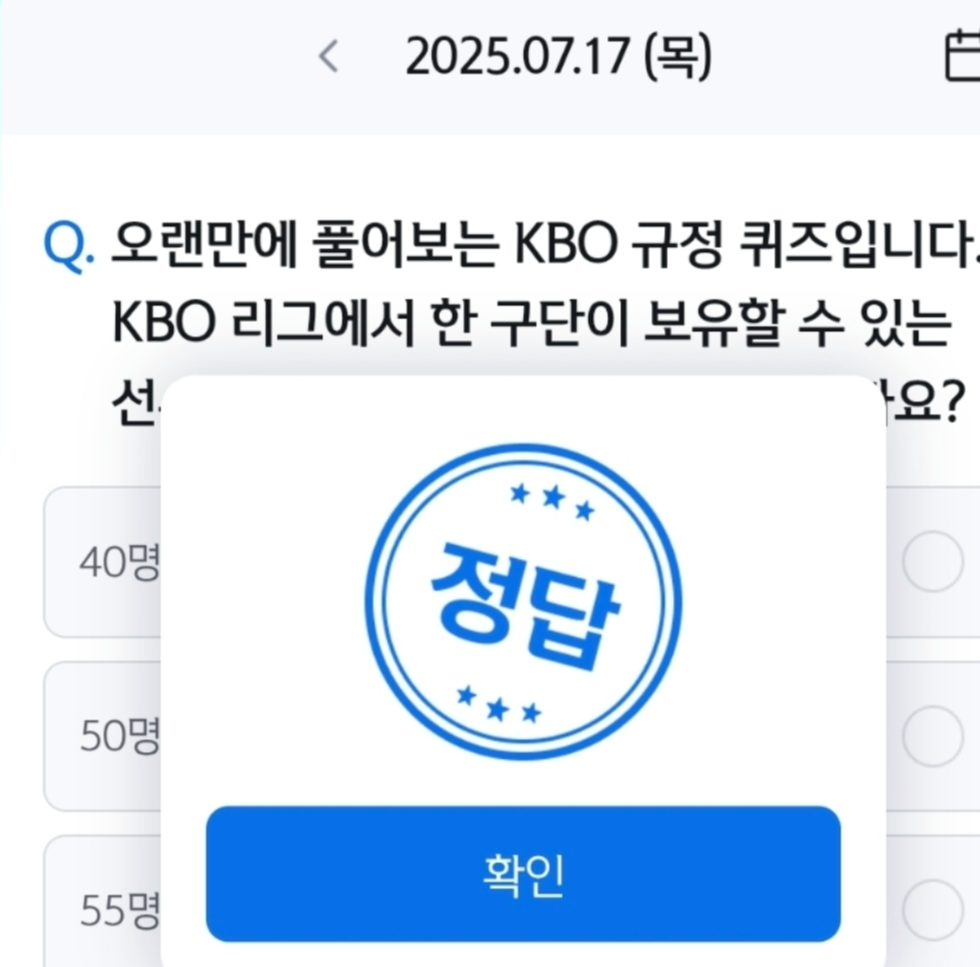 신한 쏠퀴즈 7월 17일 정답|KBO 선수 보유 인원, 정확한 기준은?