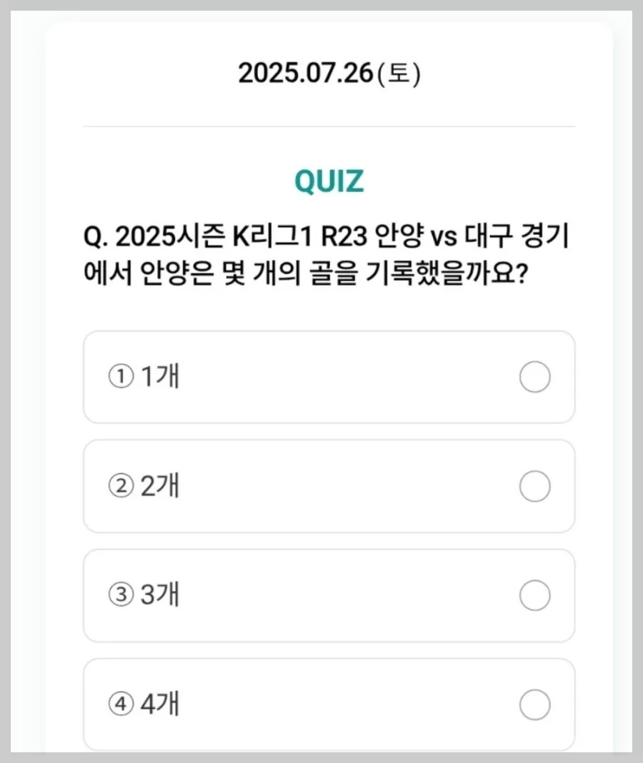 7월 26일 하나원큐 축구퀴즈 정답 공개|K리그 안양 vs 대구 경기 리뷰까지!