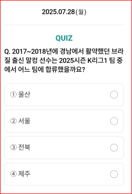 앞으로도 K리그 이슈나 핫한 경기 내용이 문제로 나올 가능성이 크기 때문에, 경기 일정과 주요 선수 동향을 함께 체크해보면 퀴즈를 더욱 재미있게 즐길 수 있습니다.
