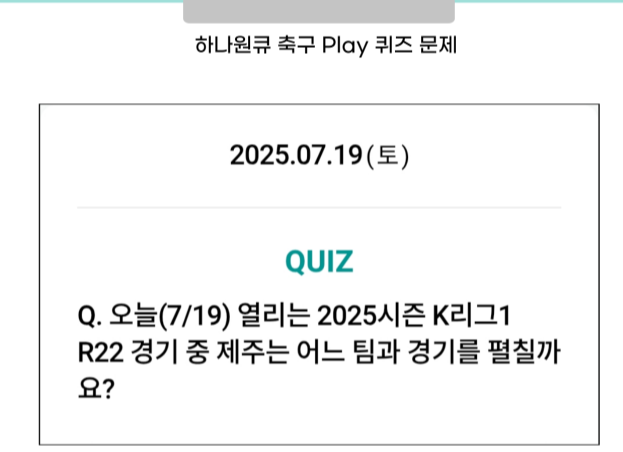 Q. 오늘(7/19) 열리는 2025시즌 K리그1 R22 경기 중, 제주는 어느 팀과 경기를 펼칠까요?