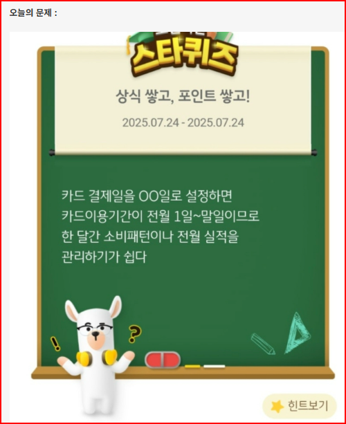 오늘 출제된 문제는 카드 결제일과 관련된 내용이었어요.